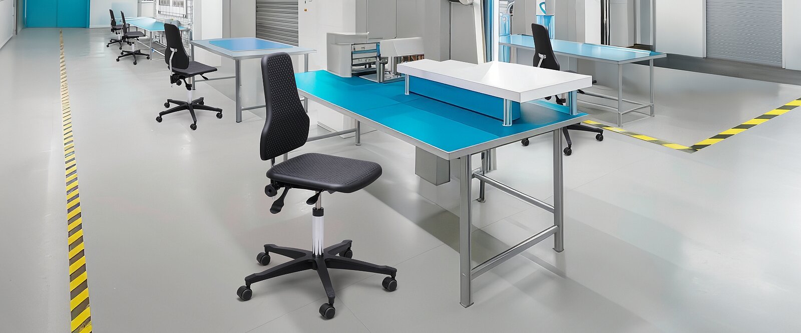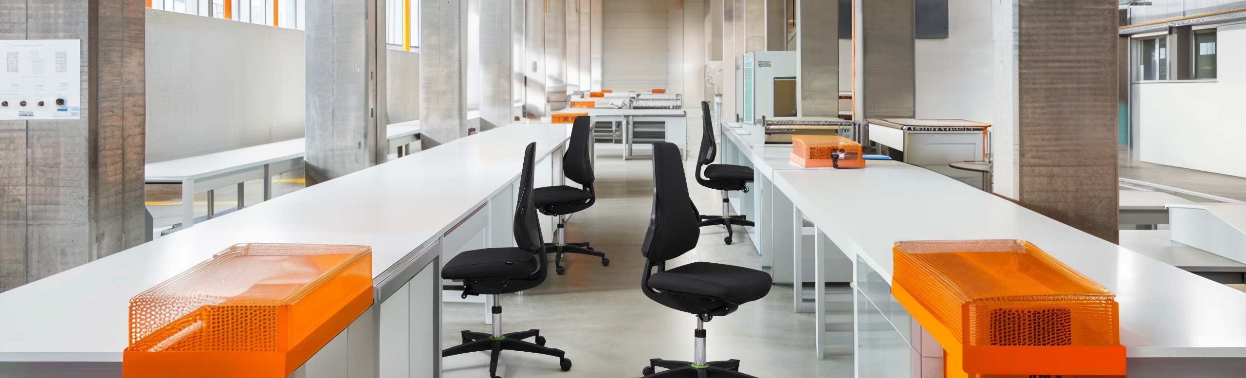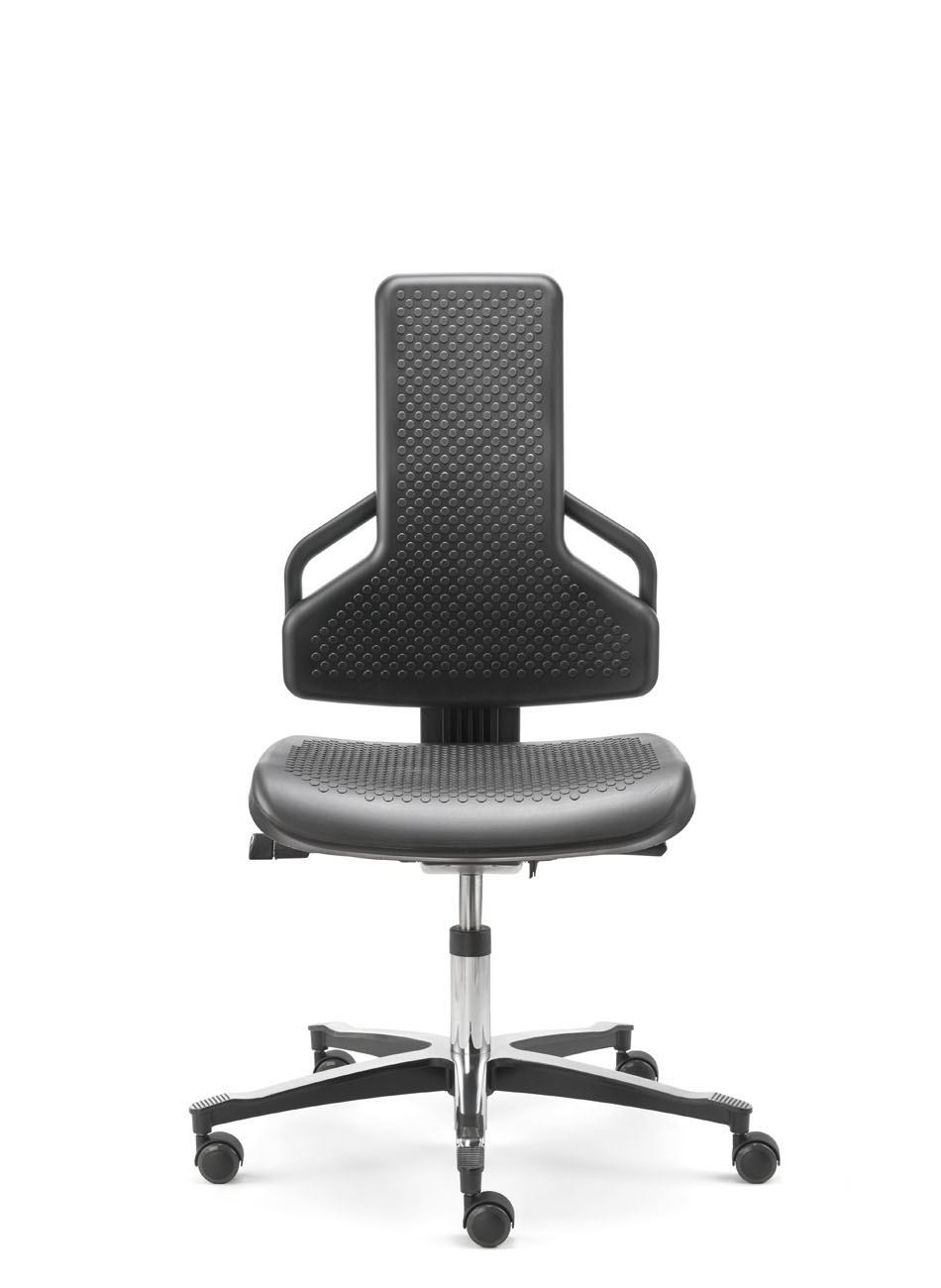 Stabilitet og sikker placering er andre vigtige kriterier for arbejdsstole i produktionsområder og på værkstedet. Endvidere kræves der holdbare materialer, som kan modstå gnister lige så godt som smøreolie og snavs.