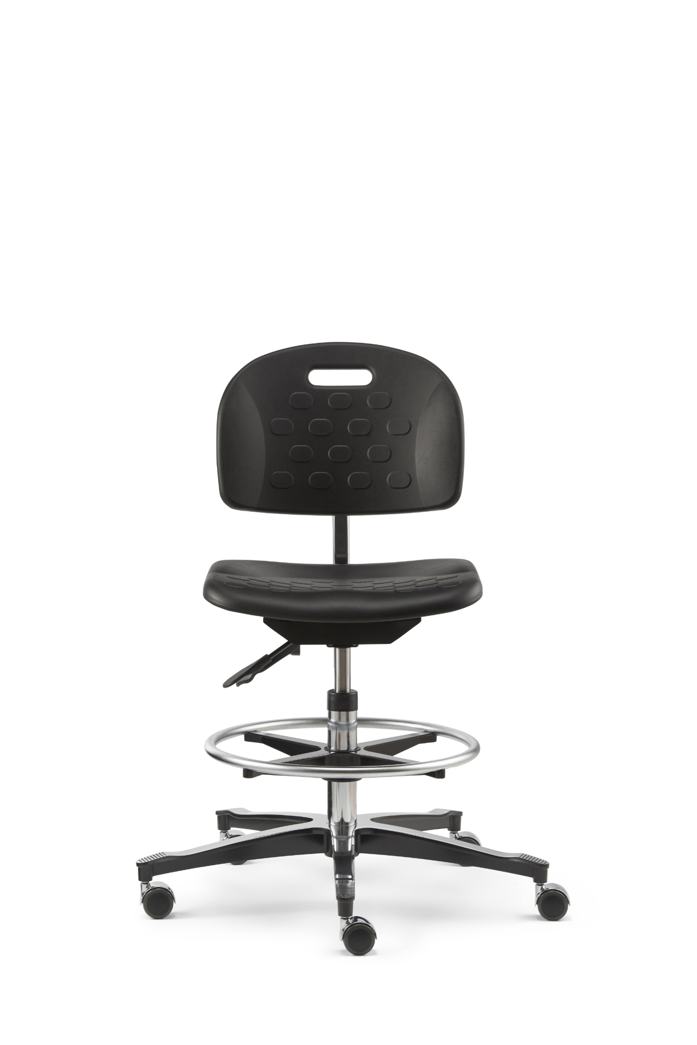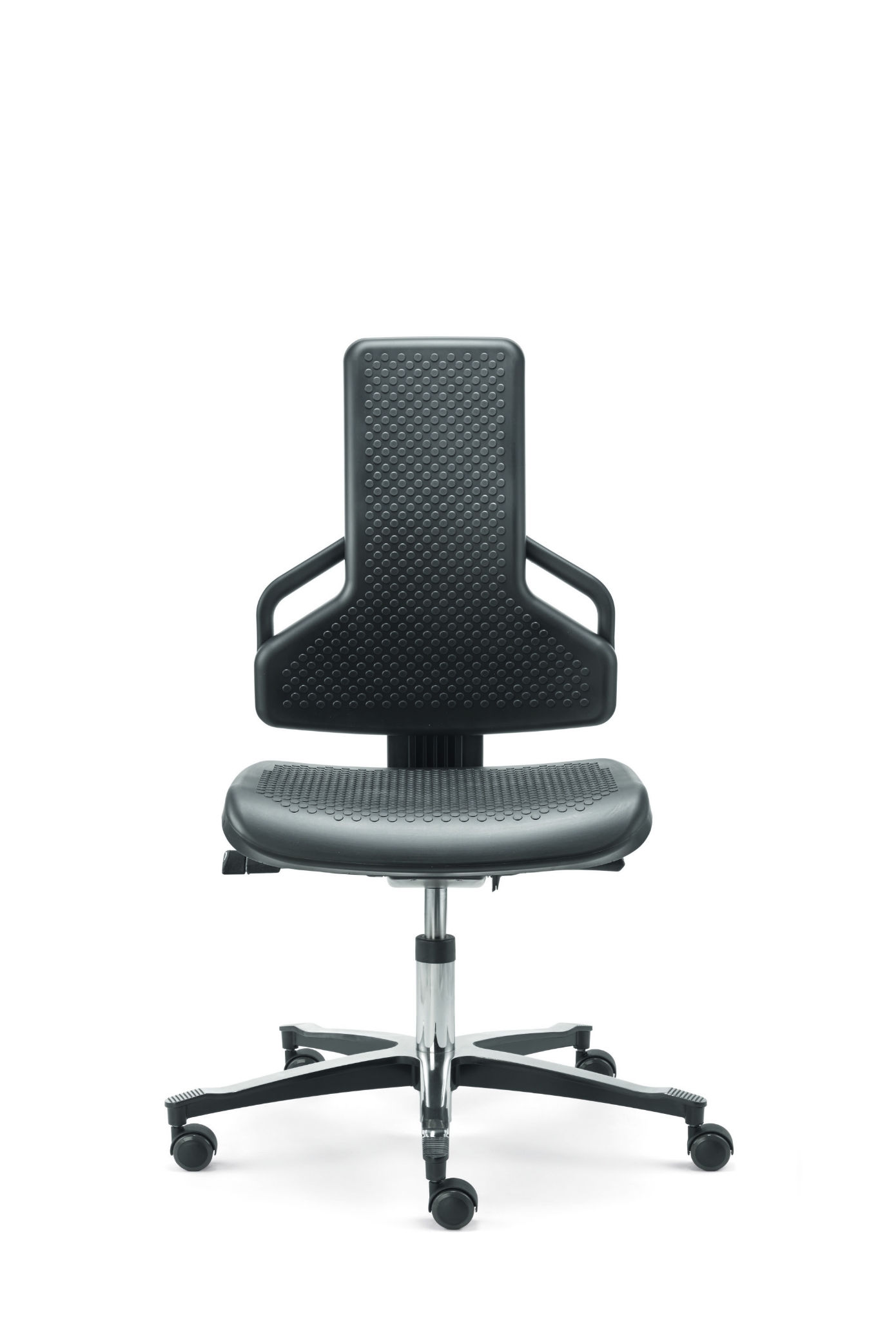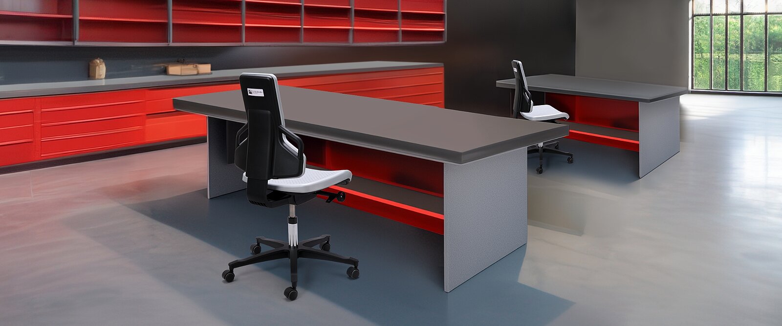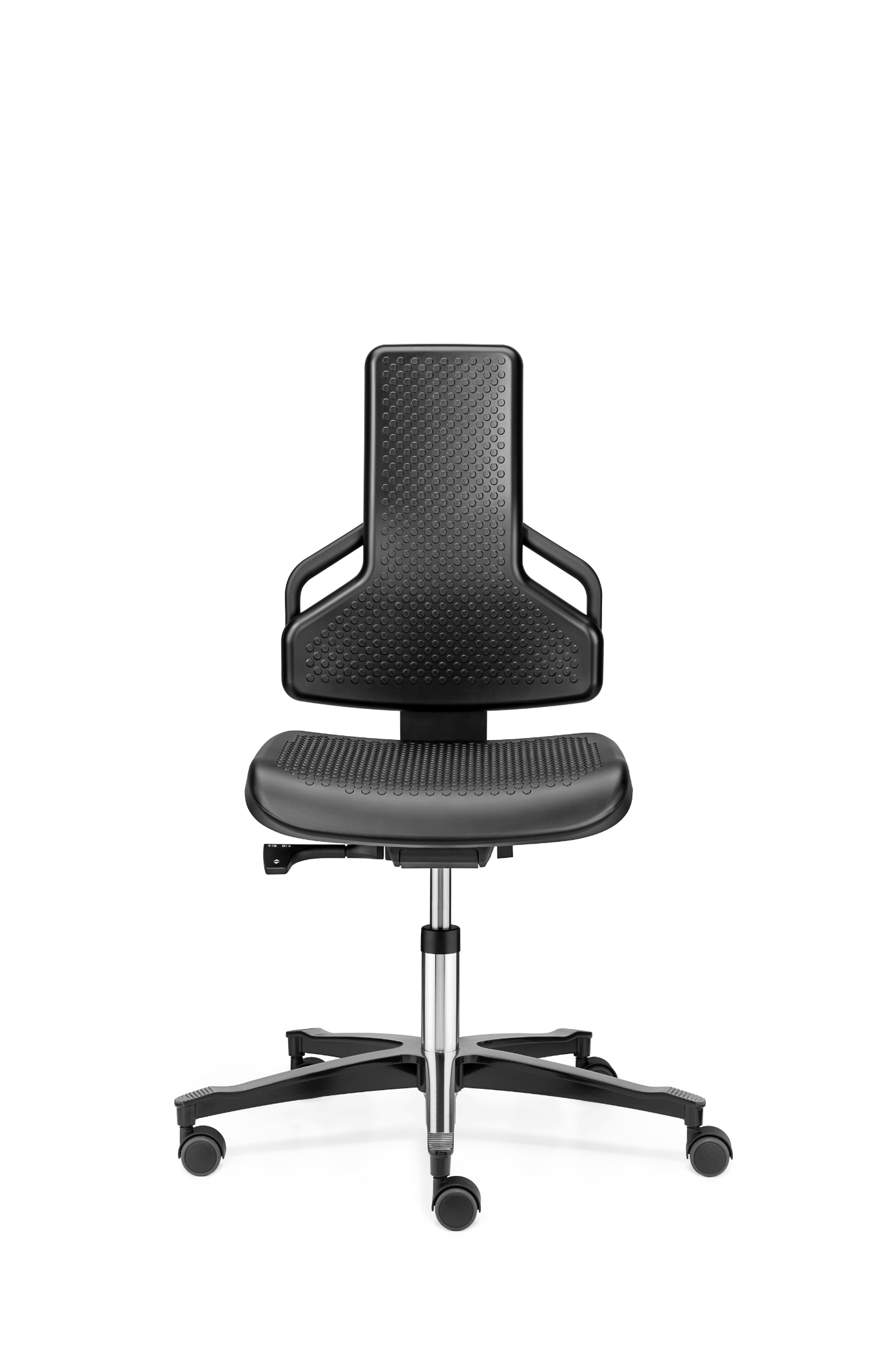 Stabilitet og sikker placering er andre vigtige kriterier for arbejdsstole i produktionsområder og på værkstedet. Endvidere kræves der holdbare materialer, som kan modstå gnister lige så godt som smøreolie og snavs.