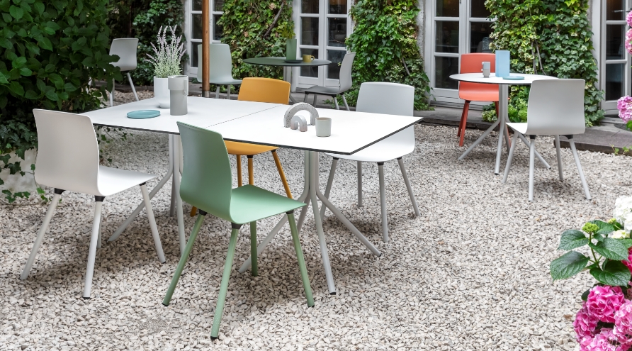 Not just somewhere to place hot cups! Our tables combine perfectly with our public-area chairs and lounge furniture. And they offer plenty of space to work and place objects. The Fiore tables with weatherproof surfaces are also very well suited to use outdoors.