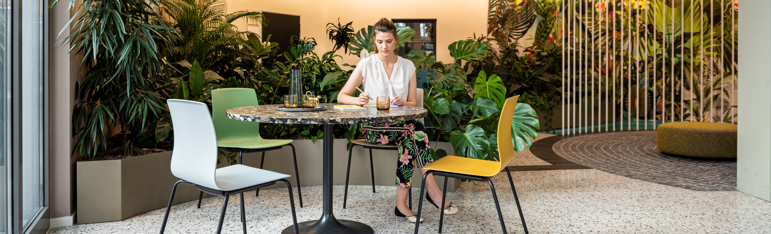 New Work requires flexible structures. Fiore nesting chairs and tables are your versatile partners for agile projects – smart and functional, mobile on wheels, and space-saving when stacked.