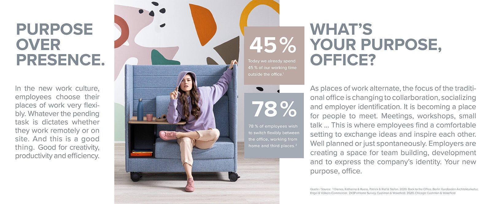 On the same wavelength … With colleagues. With the company. The office of the future is the place where teams are formed, solidarity is enhanced and the company‘s values and visions are communicated. Younger generations want this too!