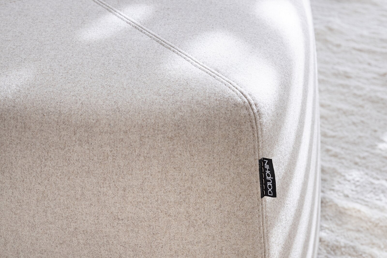 Clear edge: The diagonal seams emphasise the styling of the Allora Poufs. The inwardly tilted base makes them look like they are floating. They remain secure on the floor thanks to their non-slip surface. In the “Small” size, the stools come with a practical carrying strap – to make them even easier to handle.