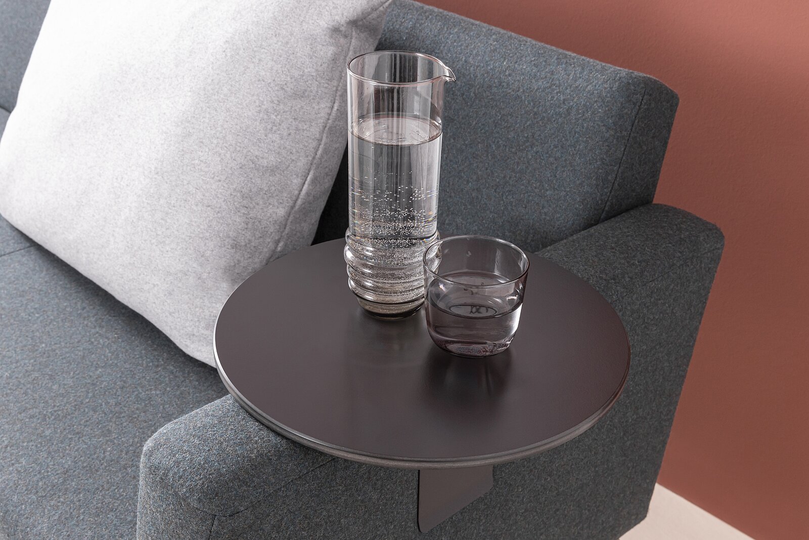 On hand if required: a retrofittable attachable tray with space for drinks, snacks and a smartphone.